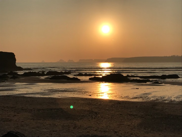 J’aime bien me réveiller en partant tranquille et petit-déjeuner 1 à 2 h plus tard. Comme je suis pas encore bien réveillé et frais physiquement ces heures passent rapidement. Je pars un peu avant Clément, il est plus rapide que moi, il va vite me remonter. J’atteins rapidement Lannion et mon road-book m’indique que la sortie de la ville se fait sur un PR… Je le constate assez vite, un singletrack tortueux avec des levés de terre régulières qui cassent le rythme. Ensuite le chemin suit la côte du Trégor, les montées sont courtes mais raides, mais en haut….les points de vue sont époustouflants. L’enchainement de baies découpées, sans un souffle de vent au levé du soleil vous fait oublier toute peine !