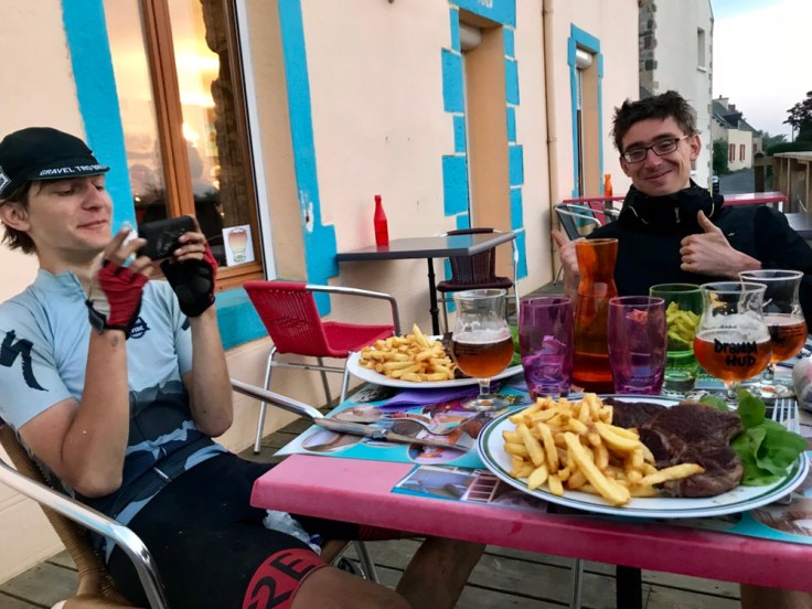 Même si la pause est un peu longue nous repartons rechargés, par contre la digestion ne sera pas favorable pour rouler longtemps. Nous validons le CP et poussons vers Morgat pour bivouaquer. La terrasse d’une école de voile nous accueillera, au sec, abritée du vent (jusque 3h où le vent tournera) avec toilette et lavabo, décidément, nous sommes gâtés pour les bivouacs. D’autres participants auront même la chance de pouvoir accéder aux douches. Le temps de checker les avancées grâce au live de Fred, nous concluons cette journée avec presque la moitié du parcours effectuée. Le dénivelé a retardé notre avancée, les prévisions donnent 3 jours jusque l’arrivée, je m’endors rapidement sur ces estimations…
