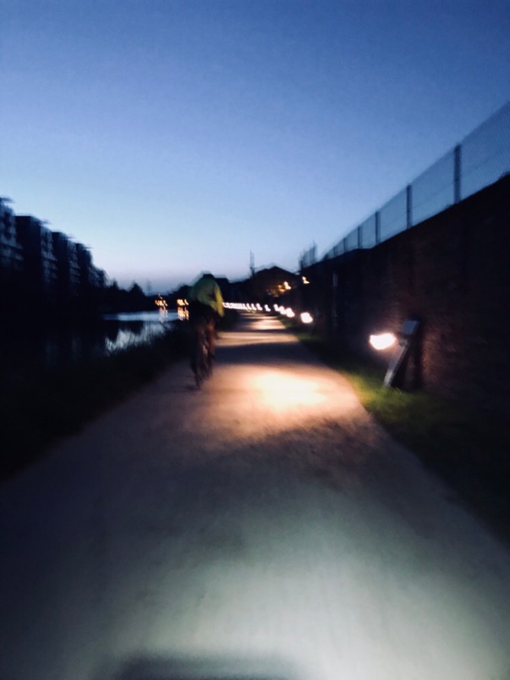 Nous partons à 21h avec comme objectif de faire une bonne pause à peu près tous les 20km. Nous avons de l’énergie donc nous partons à bon rythme, encore plus pour Clément que je suis à distance grâce à sa lampe arrière et encore encore plus pour Alain qui est parti comme une flèche et que nous ne voyons plus.