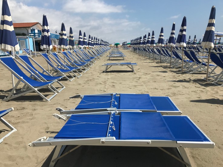 Arrivant assez tôt à Massa nous décidions d’en profiter pour voir la mer… Mais à part des alignements de restaurants et d’accès privés, le front de mer est accessible (gratuitement) uniquement par un accès public de 2 m de large et un ponton, autre culture, autres mœurs. Même en allant dans un des restaurants, la vue sur la mer nous étaient coupées par un mur, mais bon, l’essentiel était pour nous de reprendre des forces avant d’attaquer la préparation du matos.