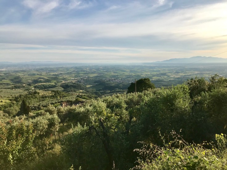 A la sortie du village nous montons entre les champs d’olivier vers la maison natale de Leonard de Vinci. Dormir dans les oliviers serait royal mais les locaux sont un peu tatillons avec la notion de bivouac sur un terrain privé. La maison natale du génie multiforme nous permet de profiter d’une vue royale sur ces paysages toscans et un robinet nous permet de nous rafraîchir et de faire le plein d’eau fraîche.