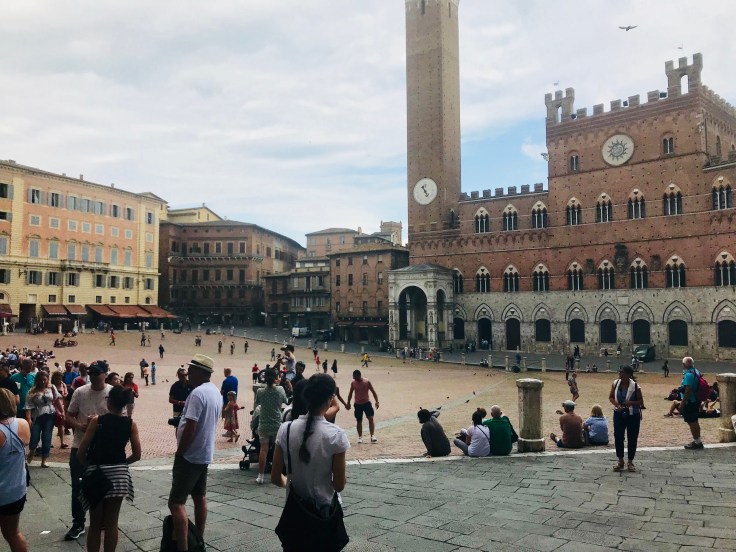 L’arrivée à Sienne ne fut pas agréable dans un premier temps par la redécouverte du trafic que nous avions oublié depuis quelque temps. Au passage, on dit souvent que la circulation en Italie est dangereuse, mais c’est parce nous avons pas les codes. En Italie, si on veut passer, que ce soit en voiture, à vélo ou à pied il fait le faire et montrer clairement qu’on le fait, les autres usagers de la route, ralentiront ou s’arrêteront pour nous laisser passer sans animosité, c’est comme ça que ça marche et tout le monde respecte ça (majoritairement fait pas se jeter sous les roues des voitures non plus). En France, si on fait la même chose, les automobilistes ne ralentissent pas ou klaxonnent, c’est pour ça que je trouve que la circulation en France est bien plus dangereuse, voilà quoi.