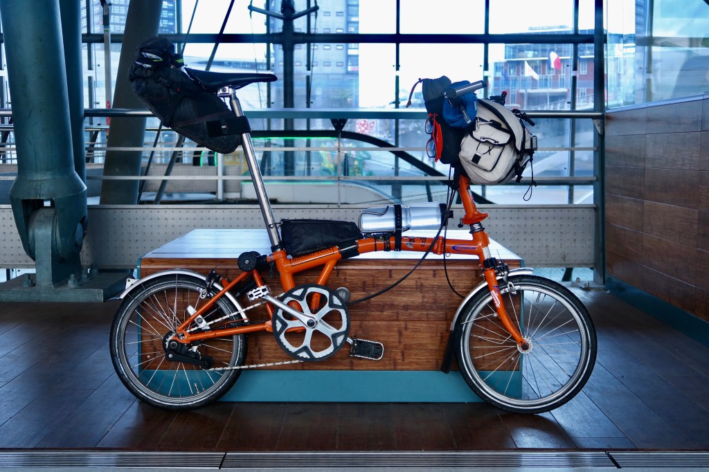 Le Brompton est l’exemple parfait sur la question de la multimodalité des transports (quotidiens) et des voyages. Il est capable de faire les deux sans problème, mais est-ce que c’est le mieux pour voyager ?? Difficile à répondre, au quotidien, en ville, il est idéal, c’est indéniable. Si votre souhait c’est de voyager principalement en train ou avion avec des visites, transferts et même explorations sur plusieurs jours, le Brompton sera parfait. Même en arrivant à l’hôtel, c’est simple de caser le vélo dans la chambre. Maintenant je trouve que le Brompton n’est pas parfait pour les longs trips sur route, ni sur chemins d’ailleurs. Il peut le faire mais ce n’est pas idéal. Comme je l’avais testé, avec mon monstercross chargé, je mets 15 min en gare pour enlever les sacoches, le démonter et l’emballer, c’est 13’ de plus qu’avec le Brompton, par contre je peux tout faire avec mon vélo, confortablement, sur tous types de terrains.