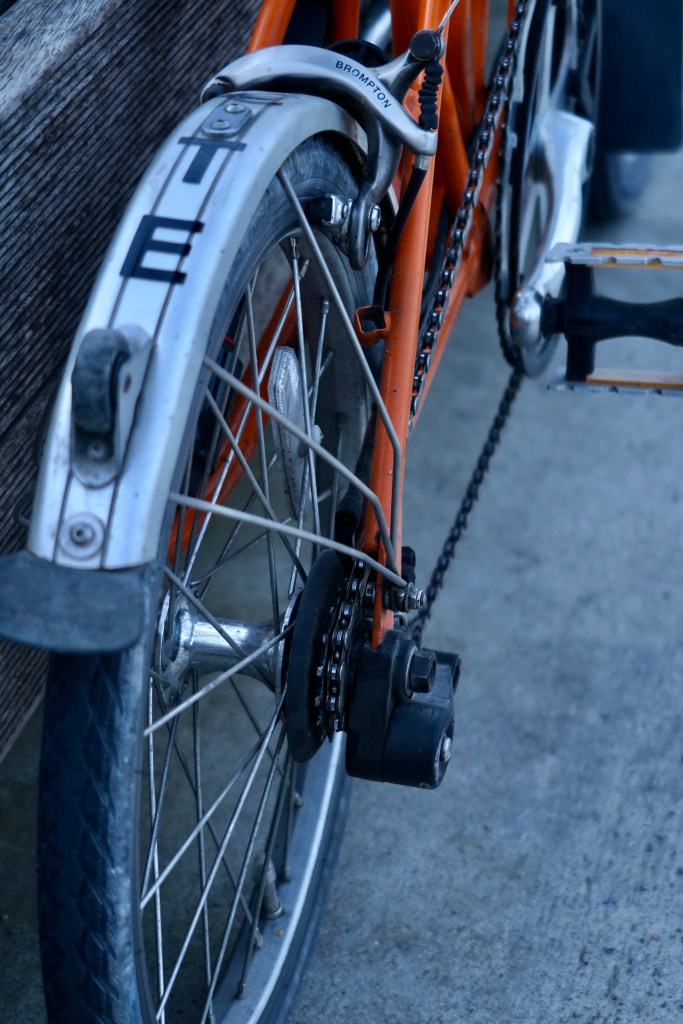 Concernant le Brompton en lui-même, sa grande qualité c’est d’avoir l’aspect pratique du transport facile tout en ayant un « vrai » vélo, capable de rouler vite et confortablement. Il est capable de faire de la longue distance, comme beaucoup de vélos d’ailleurs, mais est-ce qu’il est idéal pour ça ?!? Je ne dis pas non, il y a mieux, mais sur l’aspect facile et pratique, c’est vraiment la meilleure configuration que j’ai pu avoir. Les petites roues offrent un bon comportement à l’ensemble, le vélo est nerveux, on arrive facilement à une vitesse de croisière de 26-27 km/h. La faible inertie des roues est un plus en montée. Mais cela comporte des inconvénients, la faible inertie n’est pas un avantage sur le plat, pour maintenir une bonne vitesse, il faut toujours lui donner. Ensuite, l’angle d’attaque plus faible des roues de 16 pouces fait que lorsque le revêtement gratte un peu, le vélo est très vite ralenti. Sur de la voie verte en petit gravier, ça passe pas trop mal, si c’est du gros gravier, ça bloque. Niveau confort, la suspension (silent-bloc plutôt) cumulée au tube de selle titane de 60cm donne une impression de smooth sur l’arrière qui joue beaucoup sur le confort de l’ensemble. C’est un peu perturbant au début mais on s’y fait vite.
