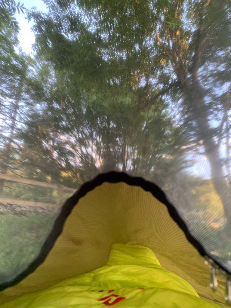 Sur les douze nuits passées sur la Sea to Peak, j’en ai passé deux en dur (gite de randonnée à Laschamps et Hôtel à Murat), deux au CP dont une à l’intérieur à la Cyclerie, dans le canapé en cuir, et le reste dehors en camping ou en bivouac nature. Je me suis lavé/rincé presque tous les jours mais surtout les jours de chaleur pour enlever le sel sur la peau. J’ai lavé les chaussettes et le jersey deux fois et j’ai rincé le short trois fois, une fois lors de la baignade et deux fois sous la pluie. Concernant les températures la nuit, nous avons eu entre 4 degrés en Ardèche et 18 degrés les premiers jours. Cela laisse une large plage de température, j’étais content d’avoir mon duvet 4 degrés.