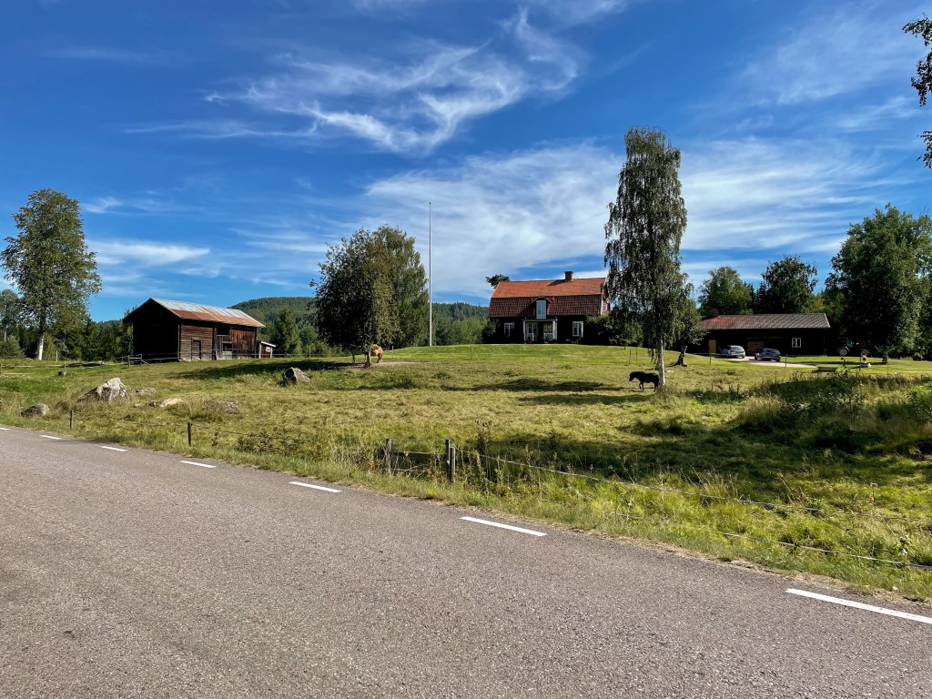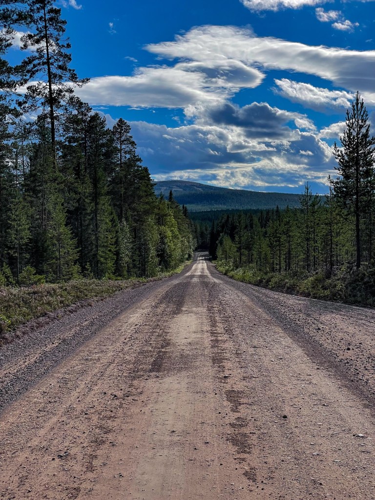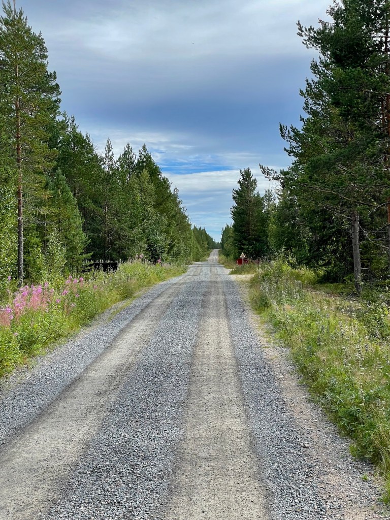 Je serpente toute la matinée dans les forêts claires couvertes de myrtilles et les hameaux qui rassemblent quelques maisons en bois rouge. J’avance jusque Kalix où je ferais ma pause le midi. C’est la première ville depuis 90 km. J’ai changé de pays et donc de monnaie, fini l’Euro, je passe à la couronne suédoise. Je cherche à manger et je me pose sur un banc au bord de l’eau, un Écossais m’aborde, cela s’entend. Il est routier et me dit qu’il aime pas la Suède car il n’y a pas d’alcool en vente libre, c’est un monopole d’état que l’on trouve uniquement dans les System Bolaget, les magasins d’alcool, il est un peu roots et sympathique. Il faudra que je m’organise pour boire une bière le soir alors.