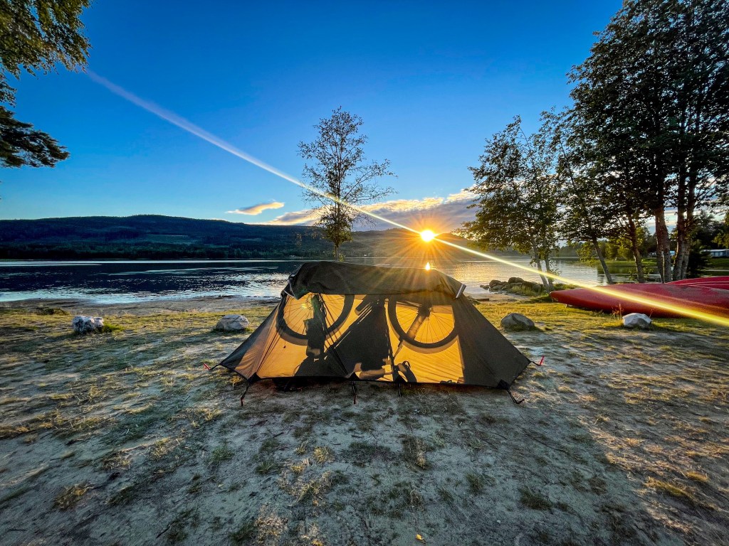 J’arriverai tardivement au camping, l’accueil sera fermé mais je suis accueilli par un couple de danois intrigué par mon vélo. Ils sont en vacances dans une tente en dur mais ils font du bikepacking l’année, ils me donnent leur code d’accès pour les sanitaires et me proposent tous ce qu’ils peuvent me proposer pour mon confort. Ils sont adorables et connaissent bien le parcours, nous discutons un moment. Je m’endormirais paisiblement au bord de la rivière après avoir ingéré, entre autre, une boite complète de sauce cheddar, le rêve.