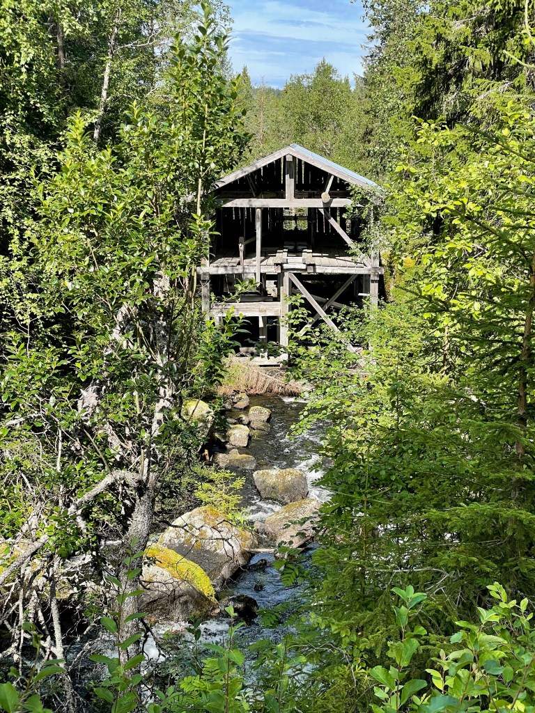 La traversée ne sera pas si longue et je retrouve rapidement la piste de l’autre côté. En avançant je me rappelle que je suis sur le territoire de l’ours, je guette à chaque virage mais je ne le croiserai pas. La piste se déroule, les collines encadrent ce paysage d’aventure et je me fais doubler par des motards, ce doit être le paradis pour eux.