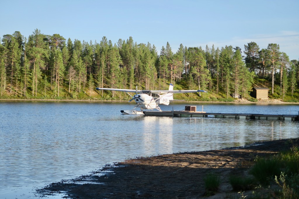 Fin d’après-midi sur un lac lapon, le soleil descend doucement vers la cime des arbres, quelques maisons en bois rouge sont éparpillées autour de la seule intersection du village, un camping, un bar-resto et un centre consacrée au peuple skolt, ils appartiennent à la communauté des Samis, sont orthodoxes et viennent de Russie. Le mémorial est fermé, je me rabats, dommage, je dois me rabattre sur le baari. L’accueil est parfait, un bar-resto-épicerie, ils ne parlent pas anglais mais on se comprend, la bière est servie en pinte et en attendant mon burger de renne j’ai le temps de voir arriver un hydravion, le cadre est posé.