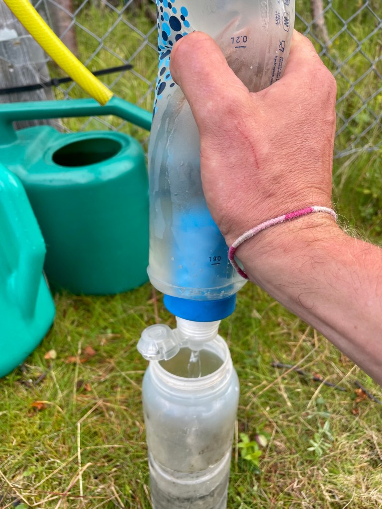 Si il y a une douche, j’en ai pris une et encore mieux si il y a un sauna, sinon je prévois 2,5 litres d’eau pour le bivouac, 0,25 l pour me rincer, 1 litre pour manger le soir, 0,5 l pour le petit déjeuner et le reste en sécurité jusqu’au prochain point d’eau. Si j’ai moins, je vais être limite et j’aime pas passer la nuit en étant limite en eau. L’eau se trouve assez bien, j’ai un filtre, je ne l’ai pas beaucoup utilisé mais il a été utile quand même.