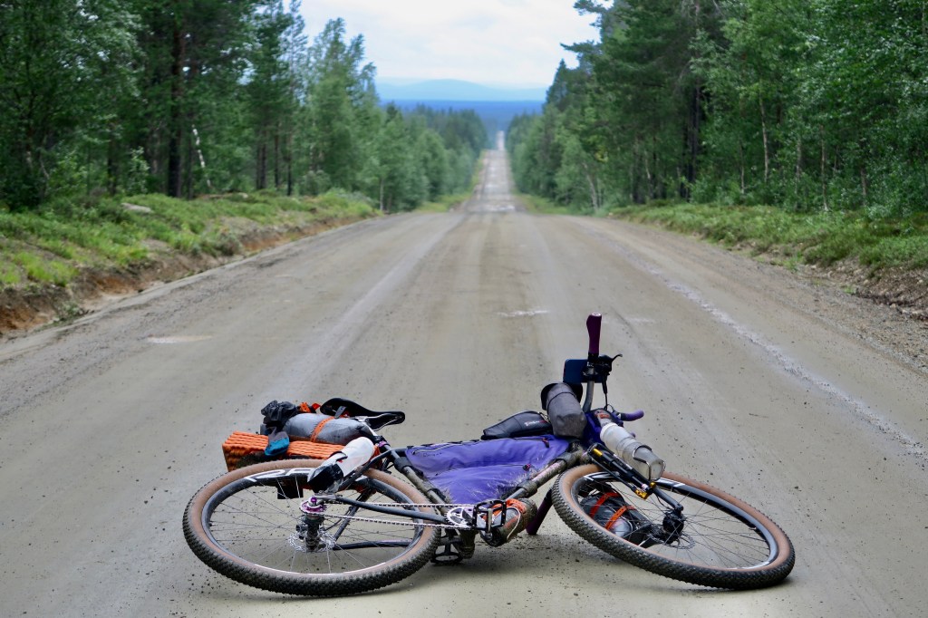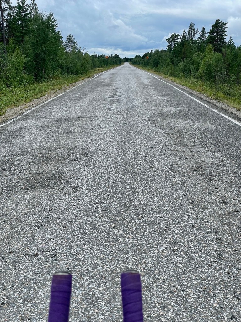 Au réveil les moustiques sont toujours là, mais toujours pas agressifs, je vais prendre mon petit-déjeuner face au lac avant de me mettre en route. C’est encore les premiers jours, je trouve mes habitudes, j’optimise le chargement. Le programme est simple, j’ai 120 km jusqu’à la prochaine ville Inari, j’ai juste à suivre la seule route qui traverse le Nord de cette partie de la Laponie finlandaise. Il y a juste un crochet à un moment pour aller un peu tâter les chemins et changer un peu mais rien d’autre, pas de village, pas de ravito. J’ai prévu pour la nourriture, j’ai deux jours de bouffe sur moi donc ce n’est pas un problème.