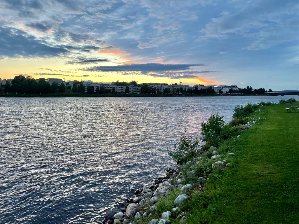 Le temps est maussade et la ville est grise, j’en ferais le tour rapidement avant de rallier le camping au bord de la rivière. En y allant, je fais un détour par le supermarché, il y a quelques bikepacher en velo de route assez bien équipés, mais oui, la North Cape passe par ici, j’échangerais quelques mots avec eux mais ils ont pas mon temps. Rovaniemi est la ville principale de la Laponie, c’est un peu touristique, c’est aussi la ville du Père Noël, le camping est donc cher, mais il y a le sauna et il fait frais, ça se prend.