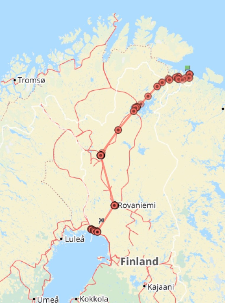 La semaine se termine sous le soleil dans un dernier sauna finlandais. J’aurais traversé la partie entre l’Ocean Glacial Arctique et la Mer Baltique. J’ai bien aimé la Finlande les finlandais, le retour à l’€uro, les saunas. Je n’ai pas vu la nuit, c’est assez plat et les routes sont longues et introspectives, mais c’est comme la Flandre, quand on y va, on s’est à quoi s’attendre. J’ai hâte de voir un peu plus de relief en Suède et surtout plus de pistes dans les grandes étendues sauvages. J’ai pris mon rythme de croisière, tout va pour le mieux, espérons que ça continue comme ça.