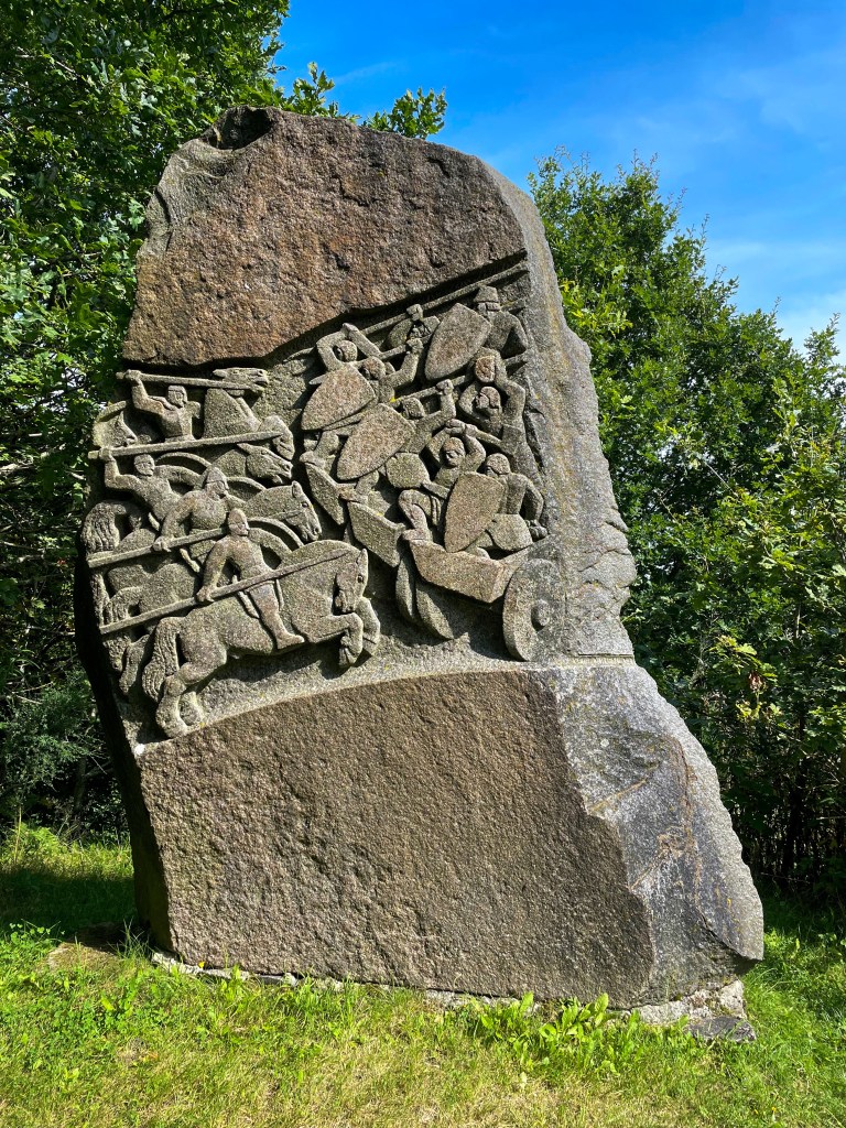 Après cette bonne soirée, je repartirais rechargé et propre. Je suivrai la côte un moment avant de bifurquer vers le centre du Jutland, la partie continentale du Danemark. Les champs et les prairies succèderont aux dunes et à la lande. Les forêts, les lacs et petites villes ponctueront le parcours. L’empreinte viking est vraiment très présente avec les tumuli en bordure de forêt, les pierres runiques, les navires de pierre à chaque coin de rue. Tout est bien balisé et indiqué pour ne rien louper du patrimoine. Le site de Jelling est un incontournable du genre avec les tumuli royaux. Les sites sont souvent bordés d’églises marquant la christianisation du Danemark après l’époque viking.