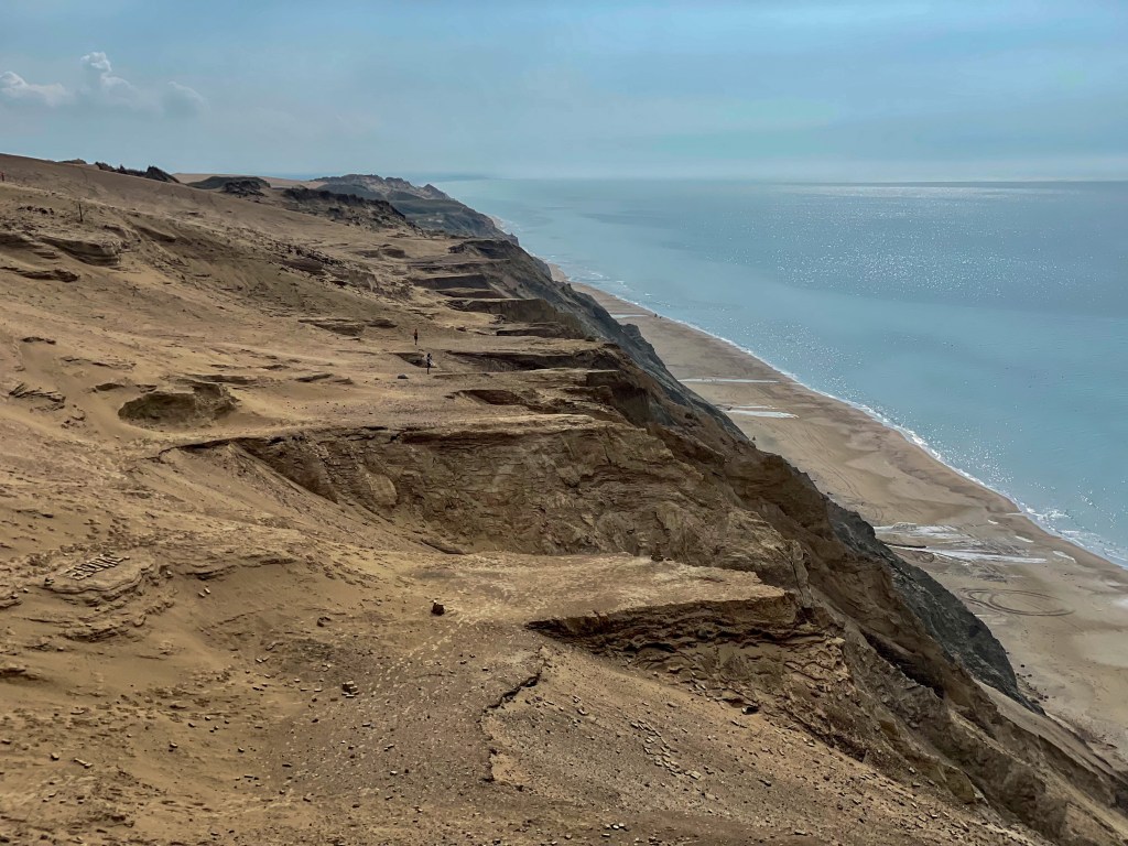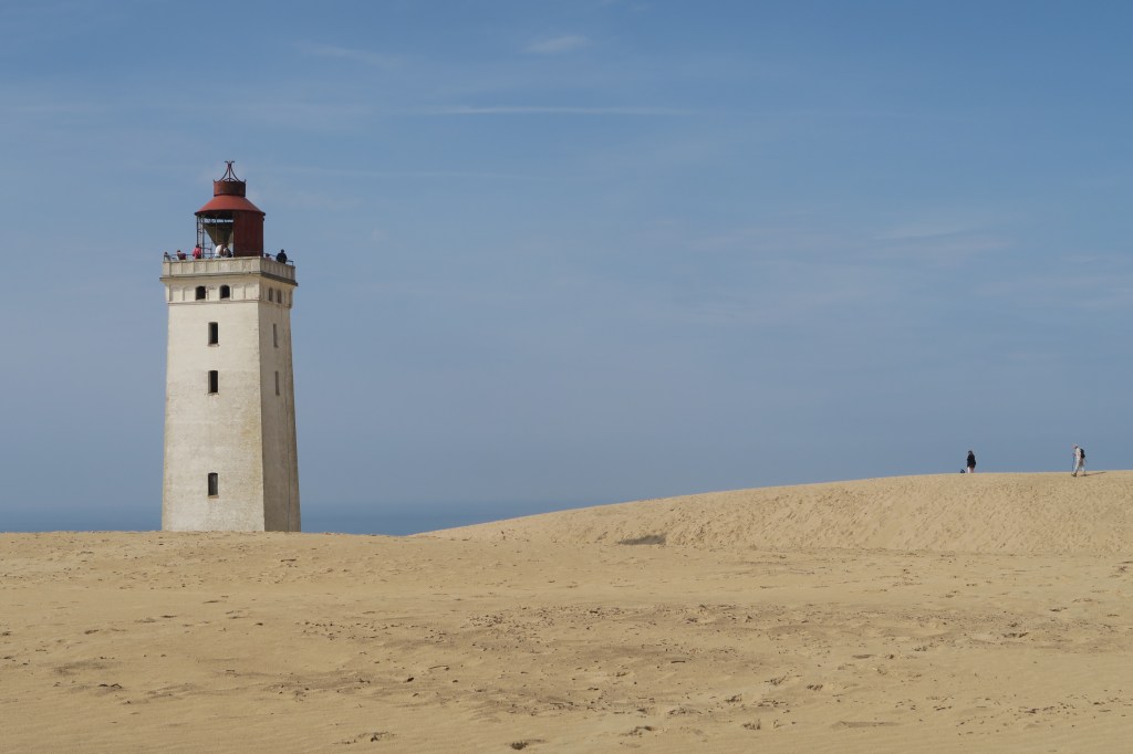 En suivant une route sur l’arrière-pays, j’aperçois une dune gigantesque avec un phare posé dans une courbure en son centre, je n’y passe pas mai je fais le détour. J’avance quelques centaines de mètres sur le chemins. C’est très touristique et de plus en plus sableux, je pose le vélo sans l’attacher et je continue à pied. L’endroit est magique, c’est le phare de Rubjerg Knude, un des endroits les plus emblématiques du pays. Avec le recul de la falaise, le phare était devenu trop proche de la falaise et étant donné son importance, il a été reculé de 70 m en 2019. La vue du haut sur la côte et les falaises est unique. Toute la côte montre un aspect très préservé et elle est très agréable à parcourir et à découvrir.