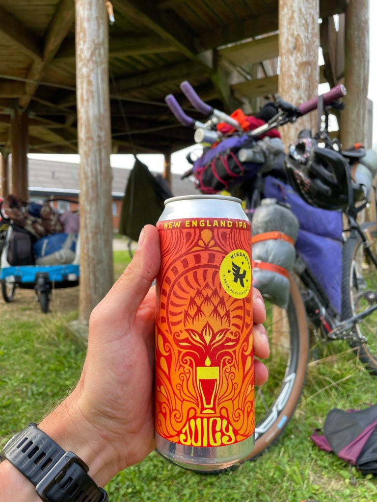 Il y a le choix dans les campings. Les tarifs me semblent bas, j’étais habitué à payer entre 20 et 30 € en Suède, là c’est plus 10-15 €, cela m’étonne au départ, mais c’est normal et c’est d’autant mieux. J’arrive au camping, l’accueil est ouvert mais il n’y a personne, il est indiqué d’appeler un numéro. J’appelle pour prendre un emplacement en tente et une lessive, la personne me donne un code en me disant que c’est mon code perso, je pourrais tout faire avec et je paierai tout le lendemain. Donc sans laisser de pièce d’identité, ni empreinte bancaire, j’ai un code qui me permet, d’accéder au camping, de faire mes lessives, d’aller à la supérette, de prendre ce que je ceux en bipant moi-même et je paierai tout le lendemain… Je trouve ça hallucinant, c’est vraiment une autre culture qui repose énormément sur la confiance. Je m’installe donc, lessive, douche, je mets ce qu’il me reste de propre et sec sur moi, un pantalon de pluie et un gilet, des chaussettes étanches et des sandales, pour le style on repassera. Le camping est vraiment bien équipé, il y a une cuisine commune avec du gaz, une salle pour se poser avec un billard.