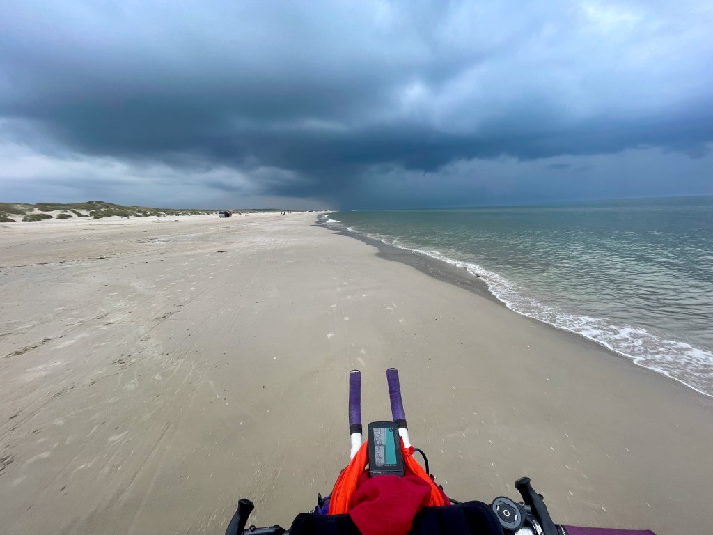 Durant la première journée, après avoir traversé un champ de dunes assez péniblement, je croise un groupe d’autochtones dont un plus âgé qui m’alpague carrément. Il me dit que je n’ai pas le droit d’être sur ce chemin à vélo et me le fait confirmer par un garde nature présent dans le groupe, ce dernier est plus mesuré et me le confirme gentiment en me disant de m’écarter des dunes pour la suite. Je leur explique que je suis un itinéraire européen et que je n’ai vu aucun panneau interdisant le vélo sinon je ne serais pas passé par là, le plus âgé me coupe en commençant à me raconter sa vie, je le recoupe en lui disant gentiment que je l’écouterais quand il m’écoutera. La discussion s’arrêtera là. Bon, OK.