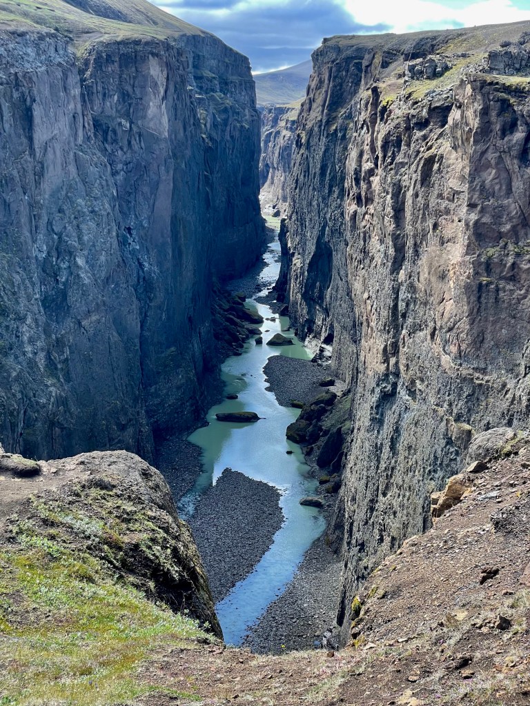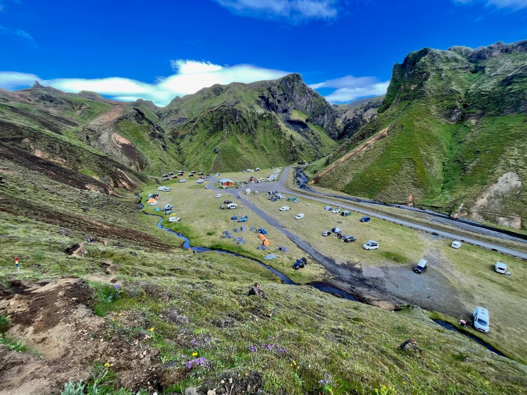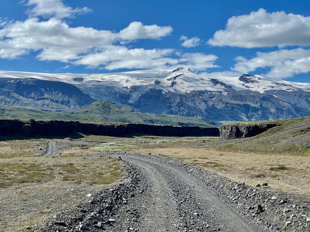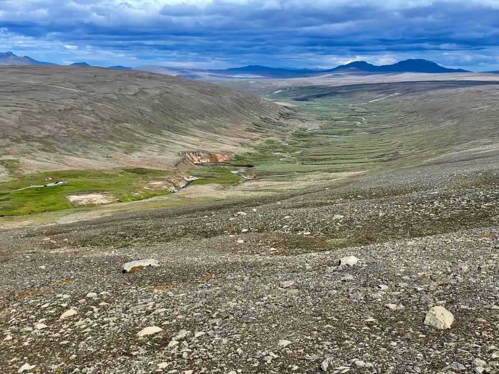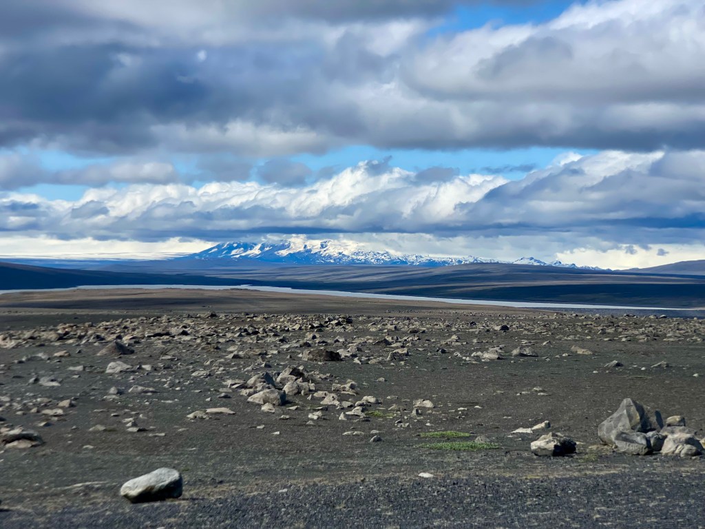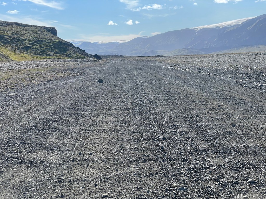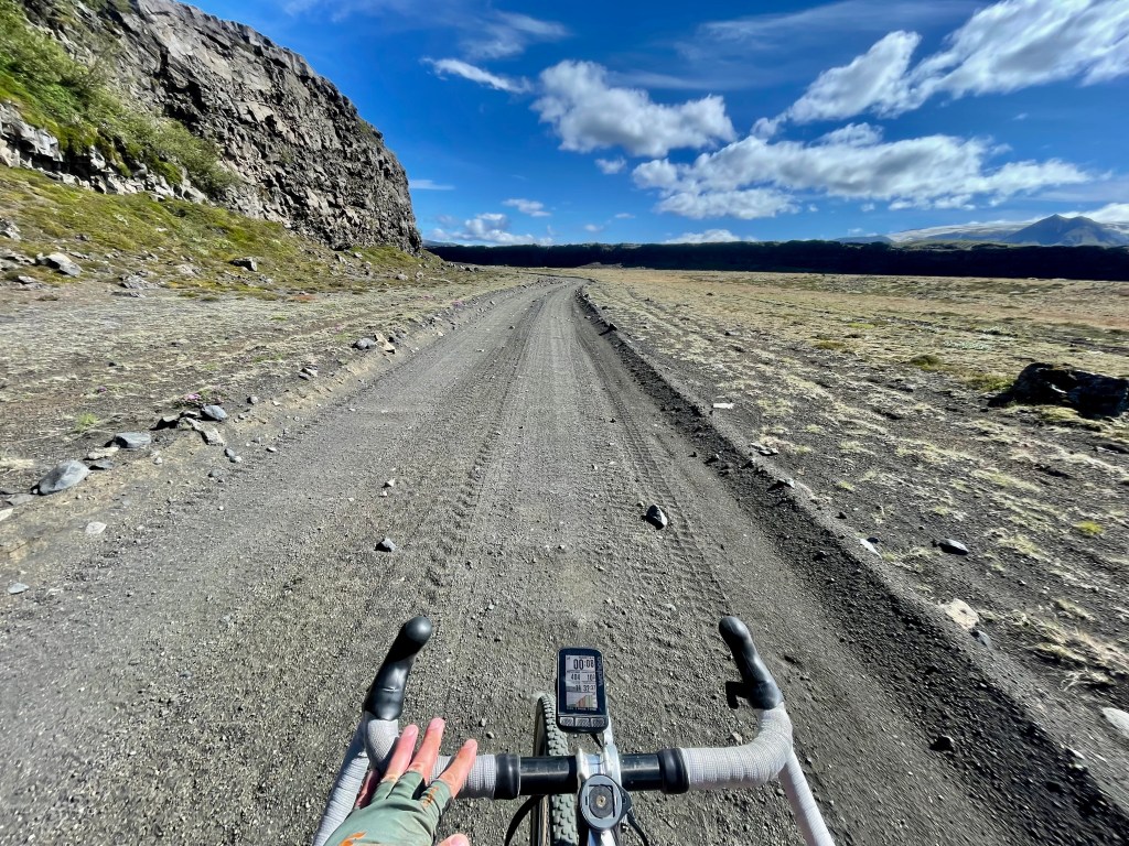 Une fois sorti du triangle, je me tourna vers le centre, dos au côté le plus au Nord-ouest je traça une parallèle à la dorsale. Trêve de géométrie géographique, je voulais explorer le centre, à vélo, j’avais une boucle qui empruntait la F35, autoroute à 4×4 qui constitue une des principales voies tout-terrain reliant le Sud et le Nord. Dès le matin, le vent montra un bon état de forme, je me dis que bon avec un peu de temps et de patience, cela passera. N’ayant que mon gravel pour participer à se périple, je ne connaissais pas réellement la cyclabilité des pistes intérieures, donc je prévoyais une boucle à géométrie variable avec des barrières horaires pour ne pas me retrouver au dépourvu. La géométrie a effectivement bien évolué au fil des heures, je suis passé d’une boucle de 405 à 270, puis 200, puis 150, puis 100. C’est simple sur les 4 premières heures j’avais fait 40 km. Les conditions étaient difficiles, vraiment, c’est l’Islande, j’ai pris ce que je pouvais prendre, et pour le reste je profitai du paysage.