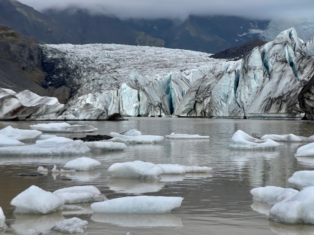 Déjà le Vatnajökull, à l’origine des ses dernières plaines, se profile à l’horizon et ses langues glaciaires se rapprochent progressivement de la mer en fermant la plaine. Les glaciers sont majestueux et masquent l’importance de l’envergure du dôme. Le brouhaha du tourisme se fait plus faible et la flânerie remplace la précipitation des masses. Oh bien sûr les dérives du tourisme sont toujours présentes, le camping est réglementé et ne se fait que sur des sites dédiés, toujours payants, souvent sommaires et parfois abusés. Les parkings des attractions principales sont également payantes et je me suis même retrouvé face à une barrière à guichet sur une piste juste pour accéder à un phare, joli certainement en tout cas je l’espère, « Outdoor is free » mais pas partout.