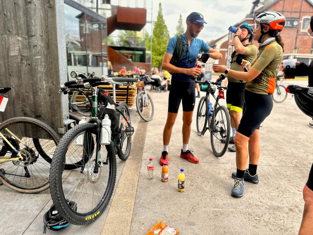 Après une soirée à rencontrer les concurrent.e.s et une nuit en bivouac au pied du chevalet, c’est le temps du départ après une rencontre rapide de l’équipe, l’ambiance et bonne, je sens que ça va être pas mal. Dans les grandes lignes le plan était de boucler la boucle de 350 de gravel autour du Bassin Minier en moins de 24h, l’an dernier nous avions mis 26h30 mais avec une équipe de 22 personnes, 7 ravitaillements conséquents et surtout une météo bien plus humide. Cette année nous sommes 14, il y aura 4 ravitaillements et la météo est plus clémente, franchement ça peut bien passer et c’est bien passé en 23h09.